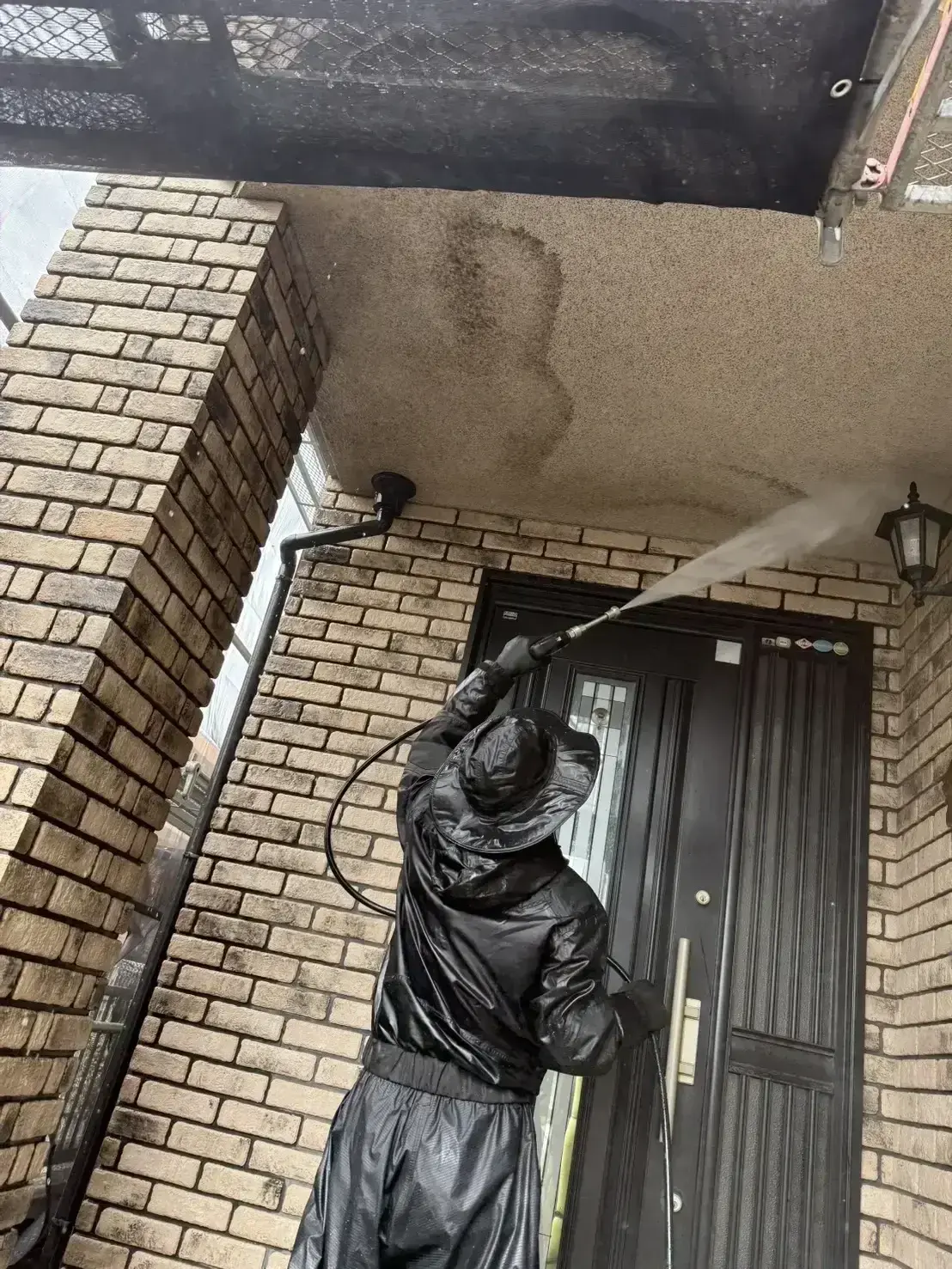 着工前に近隣挨拶・掲示、飛散防止の養生を徹底。高圧洗浄や足場架設など音が出る作業は時間帯を配慮します。